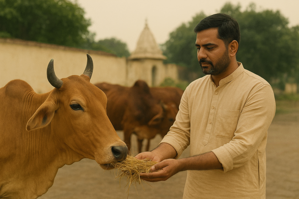 Feeding a cow is considered gau daan – one of the greatest forms of charity in Hindu culture. Just like donating food to the hungry is considered a noble act, offering food to cows holds even higher significance because of their divine status.