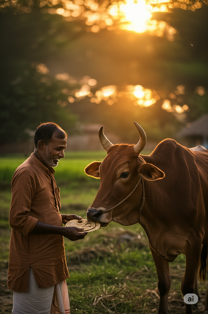 Giving the first roti to a cow is a sacred Hindu tradition believed to bring prosperity, peace, and divine blessings into one’s life.