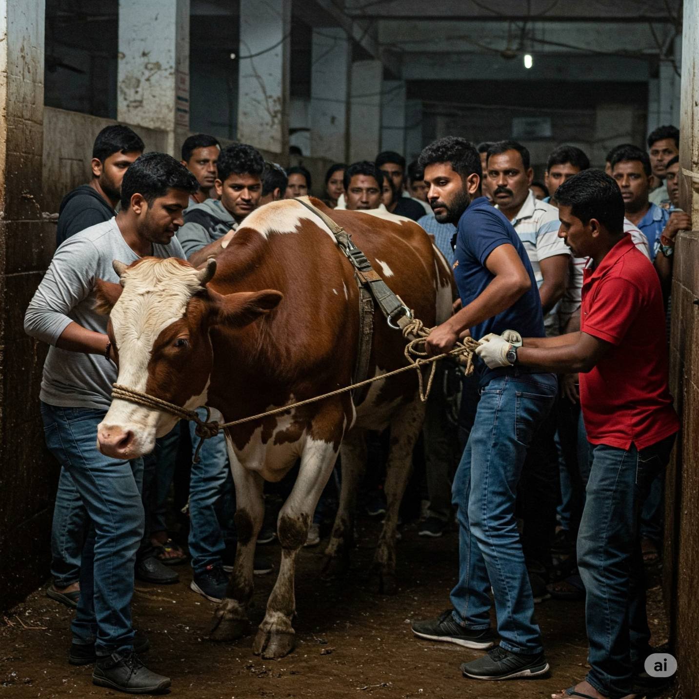 Many cows, even newborn calves, are slaughtered in illegal slaughterhouses. We rescue them by buying them from butchers and give them a safe, lifelong home in our Gaushala.